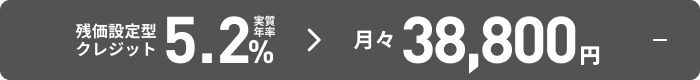 【残価設定型クレジットのお支払い例について】上記お支払い例は2026年4月の一例です。上記お支払い例は、初回お支払い月を2026年6月で計算した一例です。※本クレジットは最終回に、@新車に乗り換え、A乗り続ける(最終回お支払い額を一括または再クレジットでお支払い)、B車両を返却 のいずれかをお選びいただけます。@、Bの場合、内外装キズや走行距離などの確認事項があります。事前に定めた条件を超える場合には、その差額分を別途ご負担いただきます。詳しくは営業スタッフまでお問合せください。